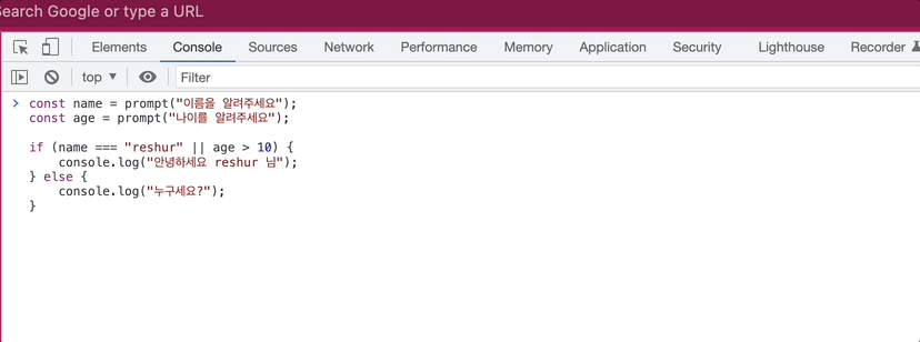 - age는 3으로 조건에 맞지않지만 (false) 이름이 reshur이기에 true를 반환함