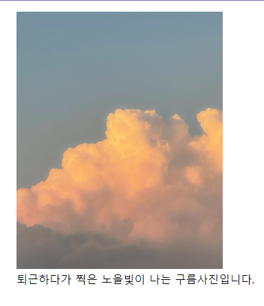 <figcaption>퇴근하다가 찍은 노을빛이 나는 구름사진입니다.</figcaption>