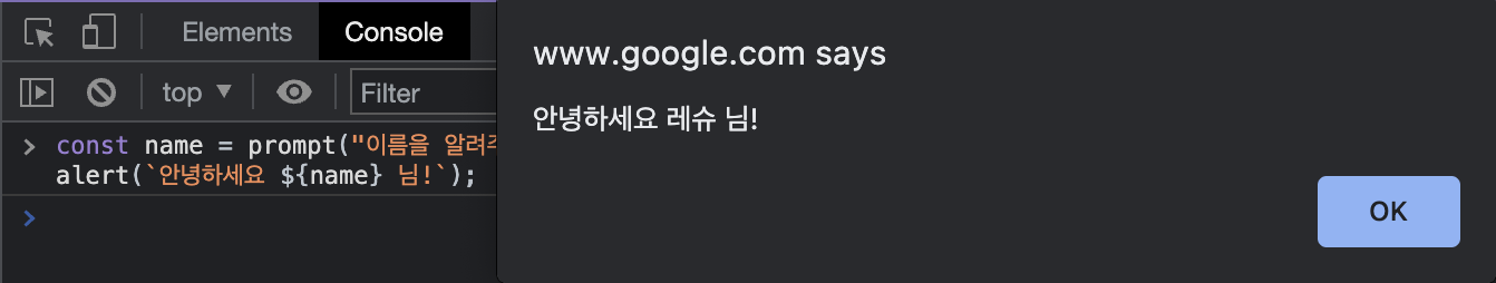 - prompt()와 alert()를 조합하여 환영 메시지를 만들 수 있다.