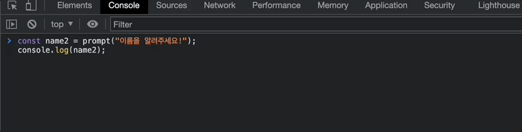 const name2 = prompt("이름을 알려주세요!");