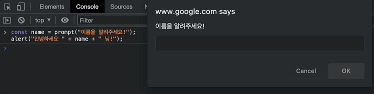 const name = prompt("이름을 알려주세요!");