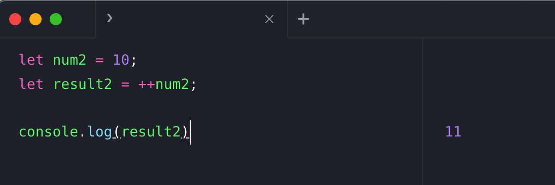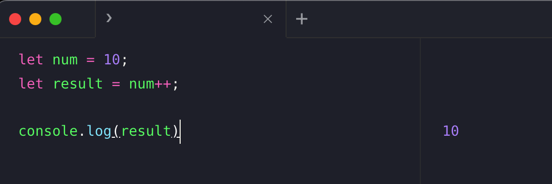 - num(10)이 result에 할당되고 (result는 10이 된다.) 그리고 +1이 되기 때문에 값이 변화가 없다.