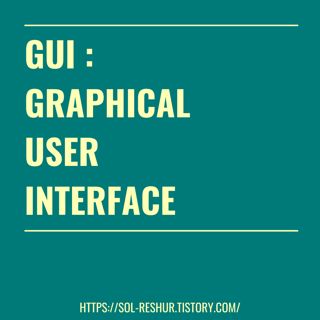 - GUI (Graphical User Interface)는 사용자(user)가 그래픽 아이콘이나 메뉴 등을 통해 컴퓨터와 상호작용하는 것을 말한다.